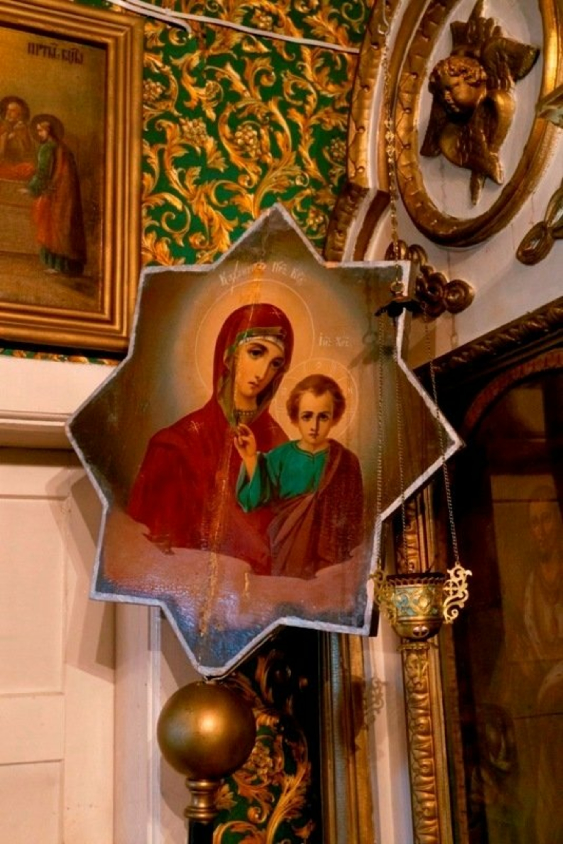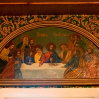 Viešpaties pakilimo į dangų ikoną nutapė profesionalus dailininkas iš Utenos Laimonas Šmergelis. Ši ikona puošia pietinę cerkvės sieną. Virš kairiojo lango kabo Dievo Motinos su Kūdikiu atvaizdas, virš dešiniojo – šv. Sergijaus Radonežiečio ikona, primenanti Utenos stačiatikių bendruomenės istoriją. Smaragdiniame sienų apmušalų fone tarpsta aukso spalvos vynuogienojai su lapais ir uogų kekėmis.