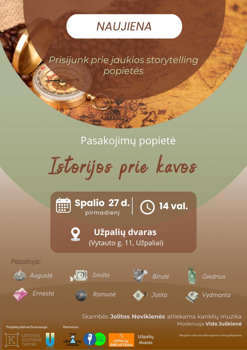 Spalio 27 d. 14,00 val. Istorijų pasakojimo popietė „Istorijos prie kavos“. Užpalių dvaras (Vytauto g. 11, Užpaliai)