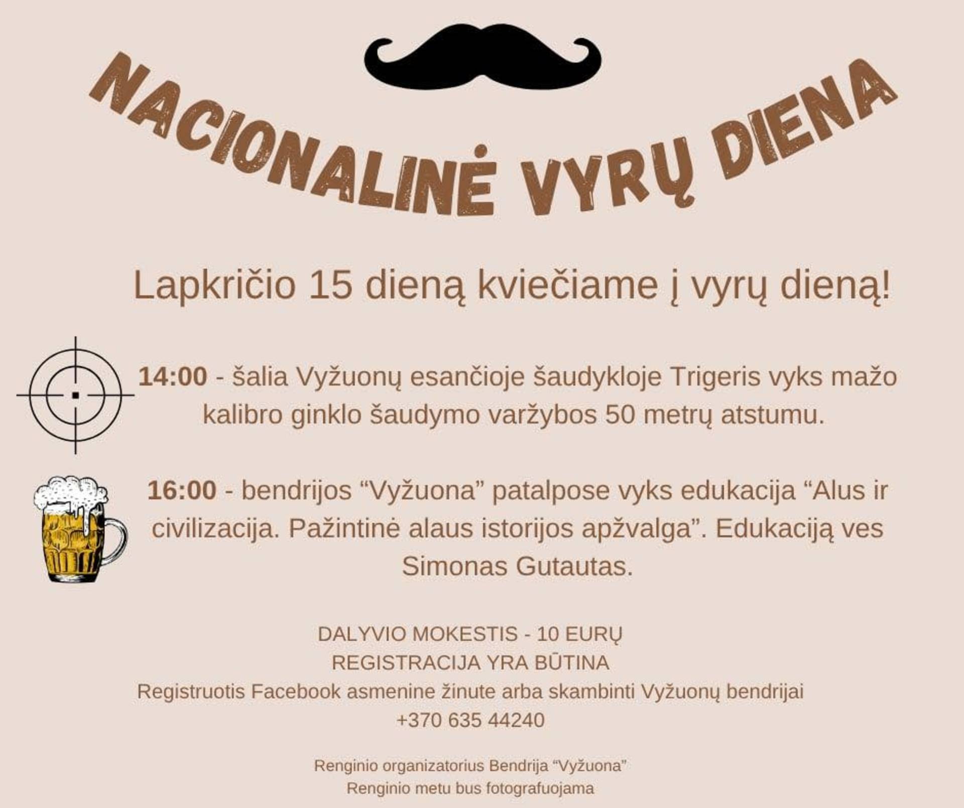 Vyrai, laikas susiburti – lapkričio 15 d. kviečiame švęsti Nacionalinę vyrų dieną Vyžuonose!